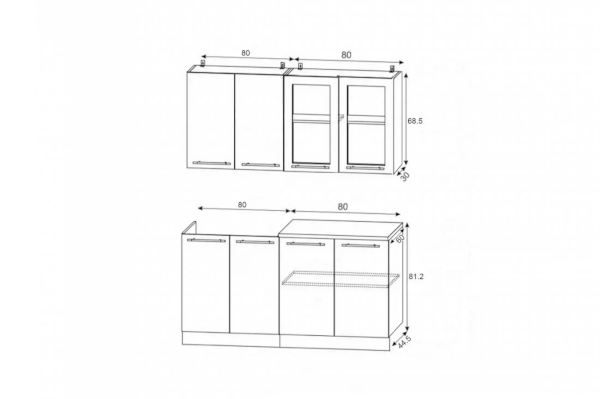 Высота верхних шкафов (мм) | 685 |